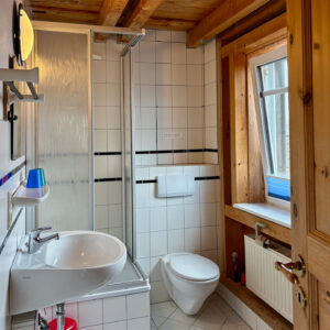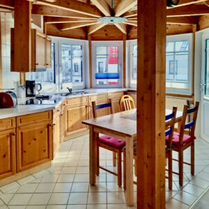 Dachgeschoss, 1 Schlafzimmer (Doppelbett), 1 Wohn-/Schlafzimmer, Turm-Wohnküche, 2 x Dusche/WC, rundum Seeblick, 2 Balkone / 1 x Süd, 1 x Nord, komplett sichtbarer Dachstuhl mit naturbelassenen Hölzern